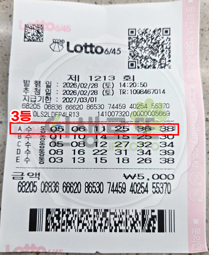 1213회차 3등 당첨