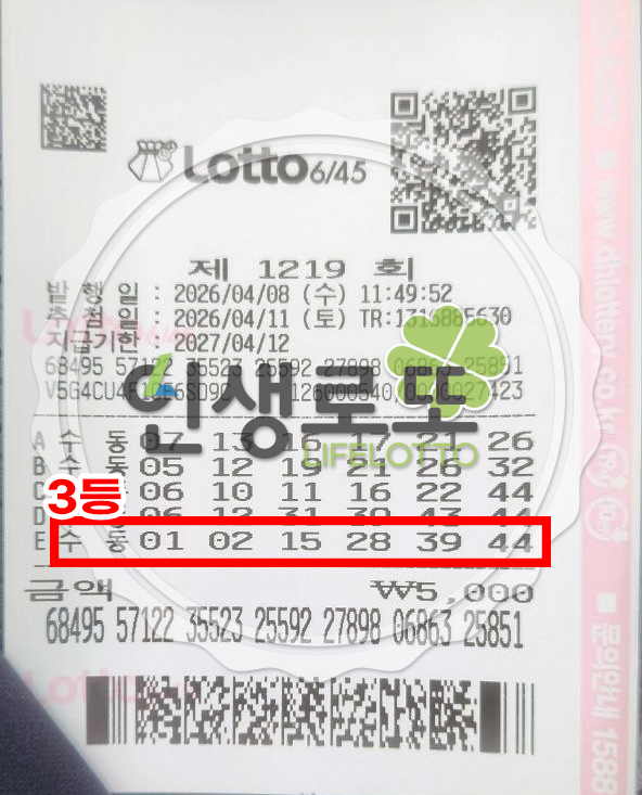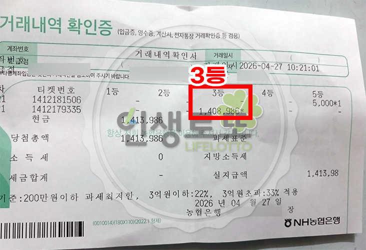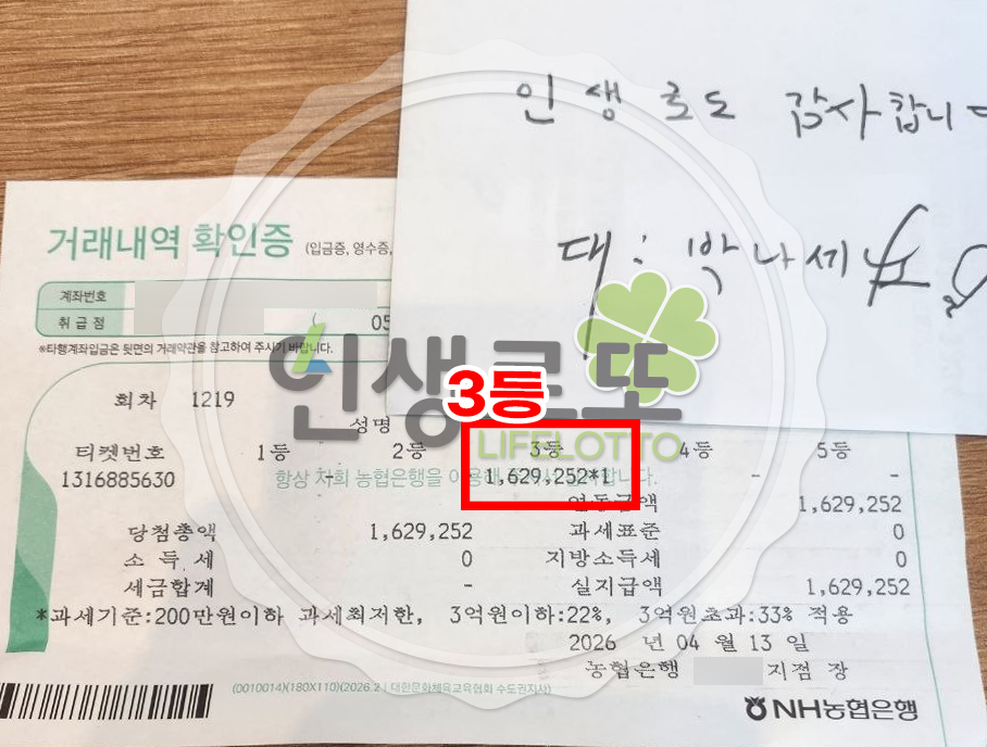 [2026년 03월 14일 제 1215회] 19억 1등 당첨자 영수증