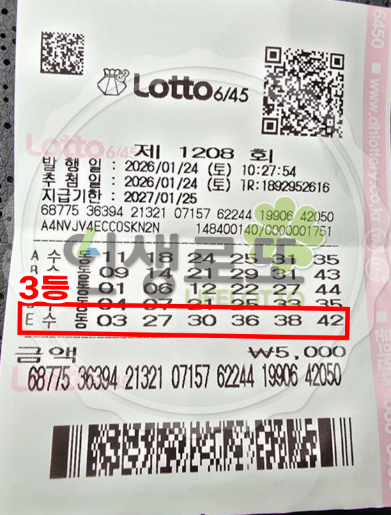 [2025년 12월 20일 제1203회] 13억 1등 당첨자 영수증