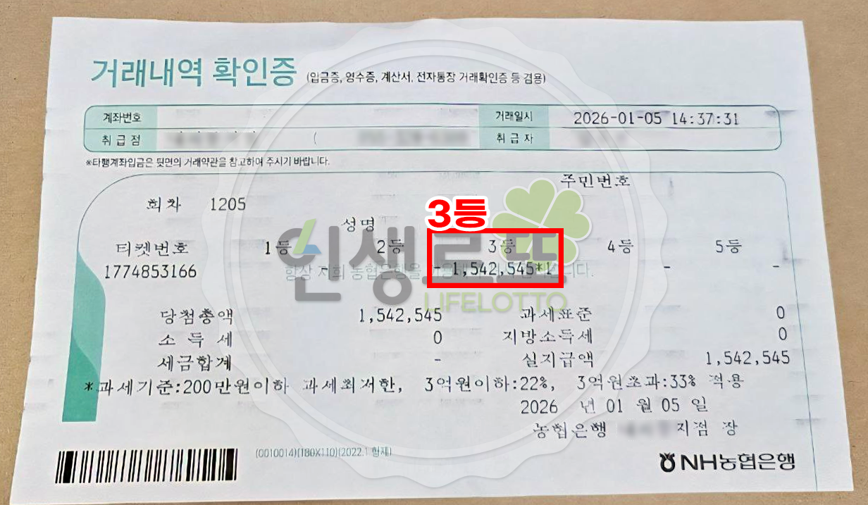 [2025년 12월 20일 제1203회] 13억 1등 당첨자 영수증